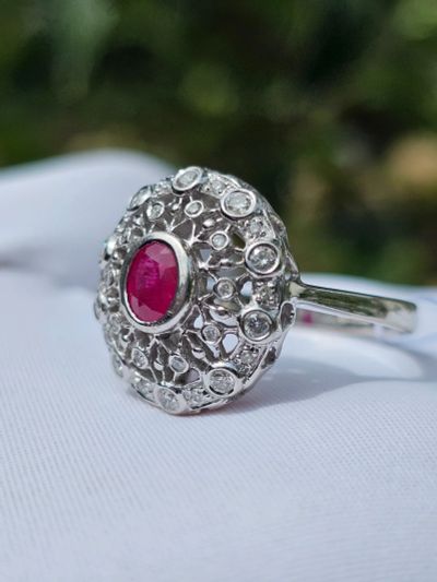 Золотое кольцо с рубином и бриллиантами